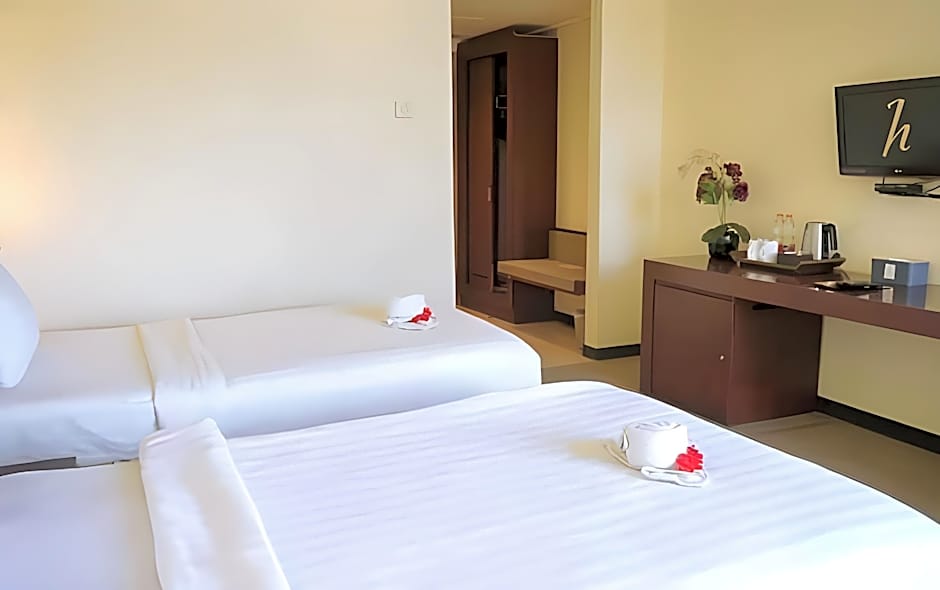 An outdoor pool invites a refreshing break after a day of exploring Makassar, and payments are cash-only for a straightforward check-in. A wide range of room types caters to different travelers, from the Standard Twin to Deluxe with two Twin beds, up to larger options like the Horison Suite and the Executive Suite, which can host up to eight adults (with additional children in some configurations).
